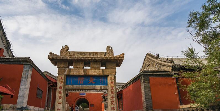 位于岱宗坊北,红门路北首,东临中溪,西靠大藏岭。宫因岭南崖有红石如门而名,创建时间无考,明清时重修。庙分东西两院,东为弥勒院,西为红门宫,中由飞云阁相连。东院正殿原祀木雕弥勒佛,1966年毁;东有穿堂式更衣亭,旧时帝王官宦登山至此更衣,今为茶室;南有穿堂式过庭。西院为元君庙。其正殿原祀元君及送生娘娘、眼光奶奶,今置九莲菩萨铜像;西有且止亭,今为泰山风光摄影展室;南为穿堂式茶亭。正殿后是禅房院及东西配房。飞云阁原祀观音大士,今为赏景台。