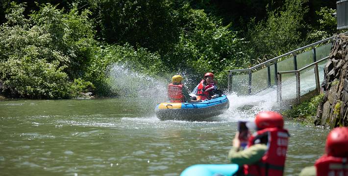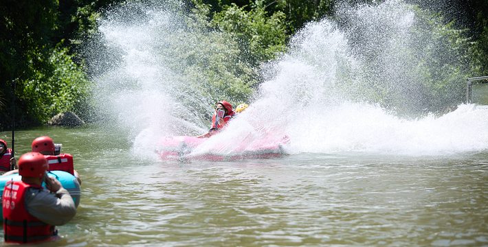 生态峡谷漂流河道位于山谷之间,水质清澈,河流蜿蜒,游客在峡谷中顺水而下,全程既可感受澎湃刺激而安全的漂流,又能在自然生态的环境中享受一流水质的无穷魅力,漂过一山又一山,赏尽一景又一景;人在水中漂,如在画中游,属于野性十足的原生态漂流。