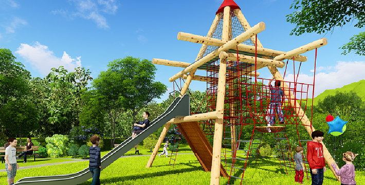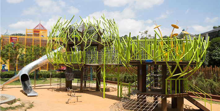 以“精灵树屋”的攀爬、滑道游玩,训练孩子的勇气和挑战信念。结合“沙水游戏”,将快乐、好奇的魅力不断放大,让孩子在体验快乐的同时,得到谦让、相互帮助的训练。