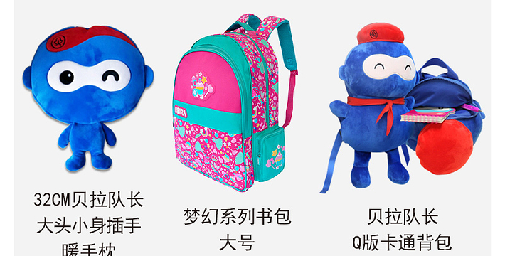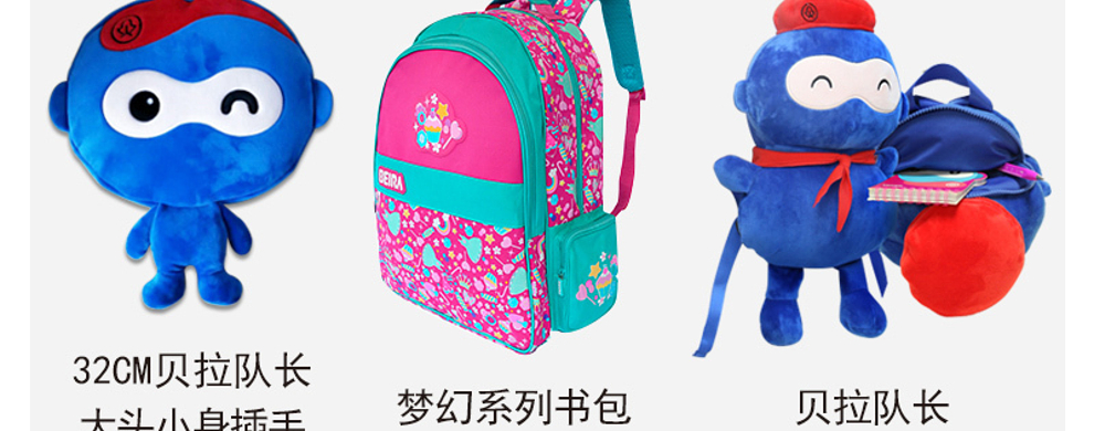 根据不同年龄孩子喜好,贝拉小镇特制一系列萌感十足又使用的贝拉队长系列IP衍生品,赠人自留俱佳。32CM贝拉队长大头小身插手暖手枕,梦幻系列书包大号,贝拉队长Q版卡通背包。
