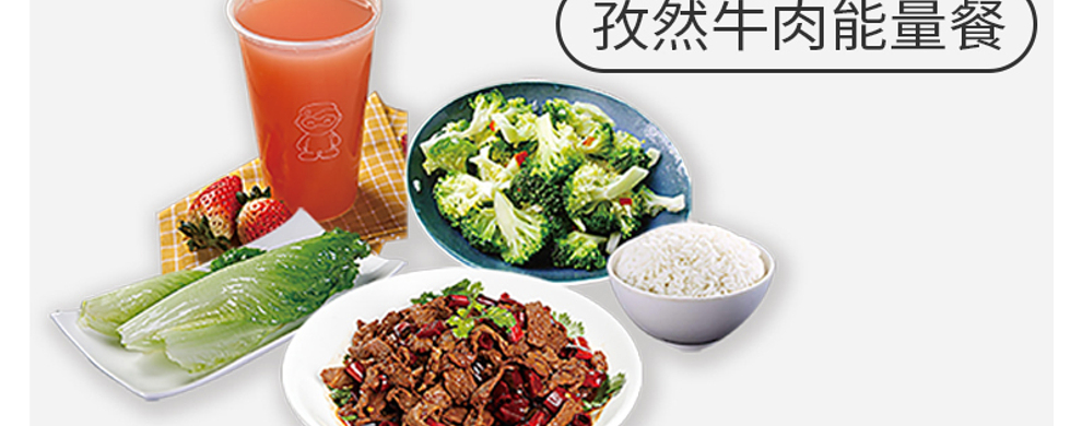孜然牛肉,米饭,烫青菜,烫西蓝花+1杯草莓汁。