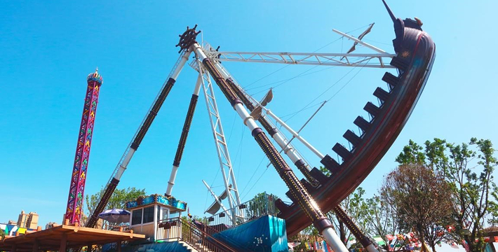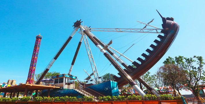 海盗船,随着设备缓缓的开始运行,海盗船就像在大海当中平稳前行!不过平静总是暂时的,随着设备功率的变大,海盗船的摆动幅度就开始变大,就像是船在大海中遇上大风浪,时而被推上浪尖,时而被淹没在低谷。