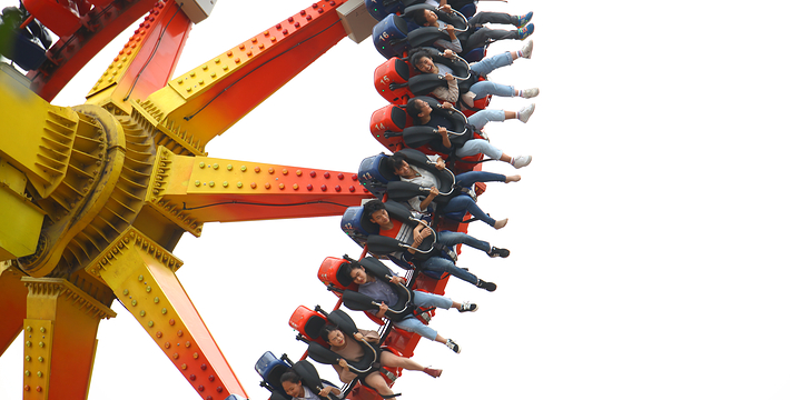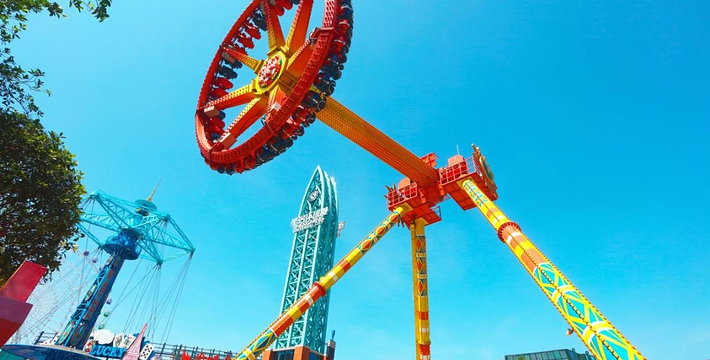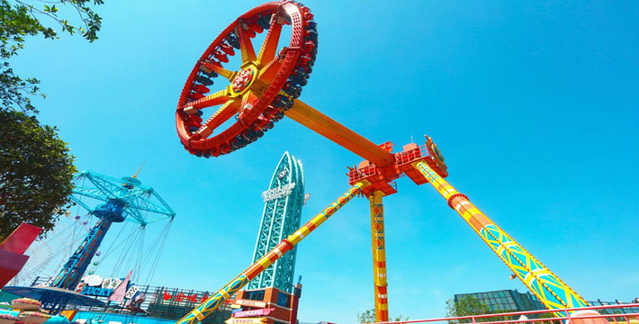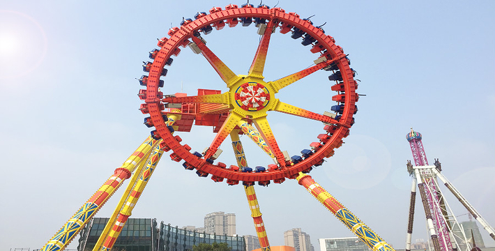 最新创意、高科技打造,六条托臂固定在大臂上,每条托臂上的座舱五个座位。在天空中就像一把伸展的大风车,3种运动叠加,360度的“狂野舞蹈”,自由翻滚,如果你不做一点儿心理准备的话,肯定不敢轻易的去体验。