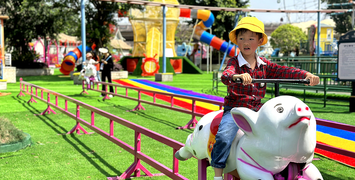 乘坐小转马如同参加一场小型跑马比赛,让你感到心旷神怡,乐趣无穷。快带上你的小朋友跟着小马一起来旋转吧!