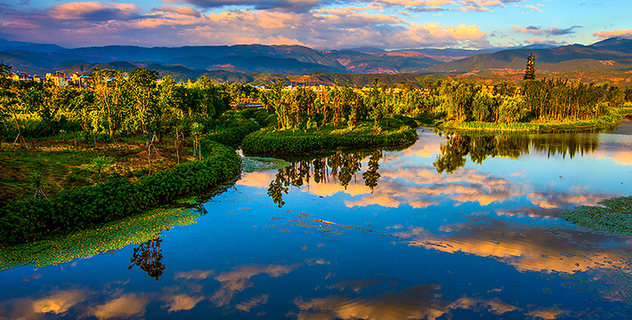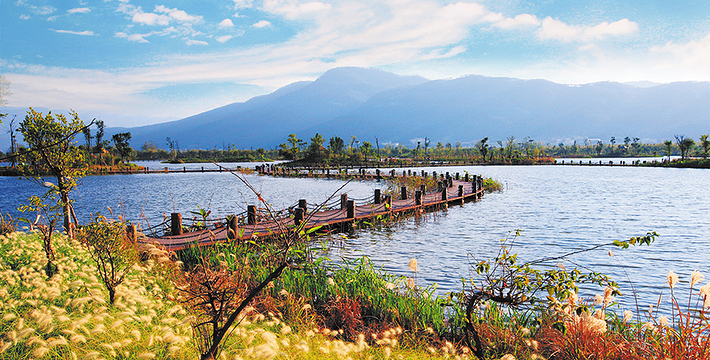 “梦里水乡”由湿地一期、二期、三期组成,位于邛海西岸,观海路东侧,占地面积6580亩,以“自然、生态、和谐”为主题,是依托邛海鸟类繁多的天然优势资源而设置的一个湿地。是人们回归自然放松心情、休闲度假的理想之地,也是邛海鸟类的栖息之地,可供游人休憩游乐,看群鸟飞翔,品人间美景,尽情领略春天栖息的湿地魅力。