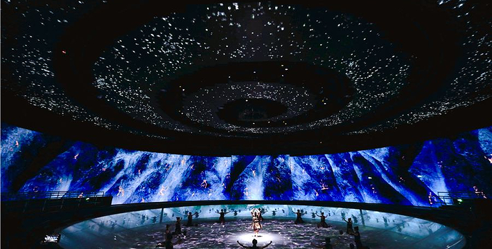 演艺剧场主要包含大型新媒体空间体验秀——《天酿》的演绎。演出时长总共七十五分钟,该剧通过第一代酱酒勾酒师——酉酉的一生,讲述追求极致酿酒工艺经历的时间与等待、四季轮回、勾兑奇遇、道法自然、包容平衡、追梦与寻找等故事。用天赐、天问、天遇……天路、天宴剧幕加上现代科技声、光、电、全息影像,展现国酒酱香古法酿造全过程。游客通过视觉、嗅觉、听觉,360度沉浸式流动观演获得不一样的文化科技融合体验。这是对国酒文化的再挖掘!这是人与酒的故事,这是人与天的故事,这是人与心的故事!一杯酒打通天地、打通本真的心!