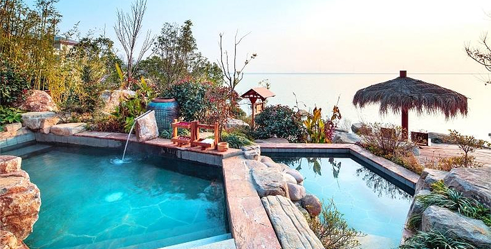 东太湖大酒店珍•SPA营业时间13:00-23:00。温泉区有各种不同*能类型的汤池: