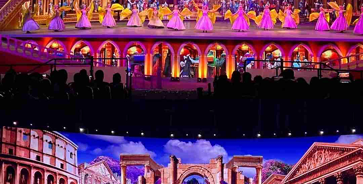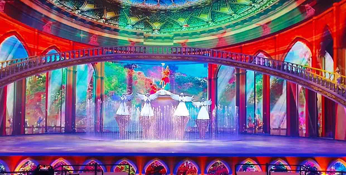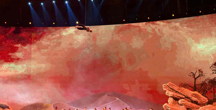 西安华夏文旅大剧院作为华夏文旅西安度假区项目的标志性建筑,设计为一座长142米,宽128米,高约50米的大型椭球体建筑物,可容纳3000人同时观看演出。剧场中央巧妙设计并修建一座可移动观众席,打破了世界单一舞台演出模式,通过旋转行走看台将观众送至优质观演位置,带给观众全新的视听享受。