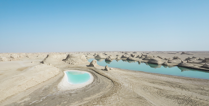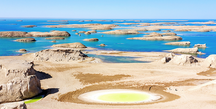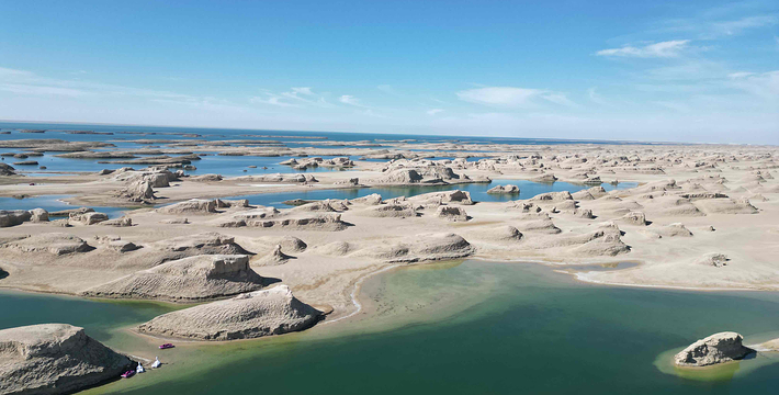 水上雅丹由雅丹地貌和鸭湖湖面构成,属于超大雅丹地貌群——南八仙雅丹地貌群之中。区域内雅丹土丘高10-25米 ,高可达50米 ,形态丰富多姿,为世界上所少见的大中型、密集的、形态奇特的雅丹地貌景观;鸭湖水源为西面昆仑山之上的冰川雪山融水,含盐量高,整个湖区风景独特,呈天空之镜之势;湖边分布有少量的水生植物,每逢夏秋季节,成千上万的野鸭子汇聚于此,构成了此区域的壮观景象。雅丹与鸭湖交融,盐湖、雅丹、蓝天交相辉映,形成了壮观的水上城堡,被户外及自助游爱好者形象地称为“百鸟千岛湖”,也是地球上目前已知的一个处水中雅丹地貌区。