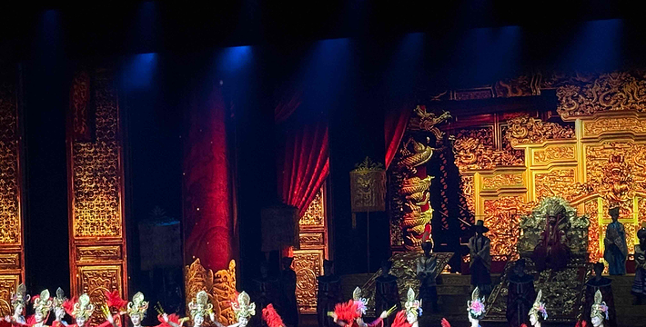 【第一幕《宋宫宴舞》】 历史的背影刚刚远去,一个新的伟大的时代——南宋王朝已经向我们走来。南宋是中国封建经济走向鼎盛的时期,无论在经济、科技、还是文化艺术都取得了巨大的成就。都市经济和对外贸易的发展水平更是大大超越前代,居当时世界的前列。南宋时的杭州人口多达百万,是四方辐辏、万物所聚的著名大都市。市内街衢纵横,茶楼酒肆、艺场教坊林立,处处笙歌管弦,一派歌舞升平的景象。