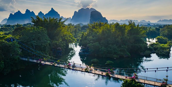广西大新县有一条名为黑水河的河流,曲折而行,在青山绿水间蜿蜒出一个个风景秀丽的神奇景观。其流经雷平镇安平村时以得天独厚的地理环境,集山水之精华,纳黑水河之传奇,成一方美丽河山,故称其为安平仙河,其两岸青山秀水,青竹苍翠欲滴,沿江泛舟,处处青山,构成“山水与长天共一色”的自然景观。