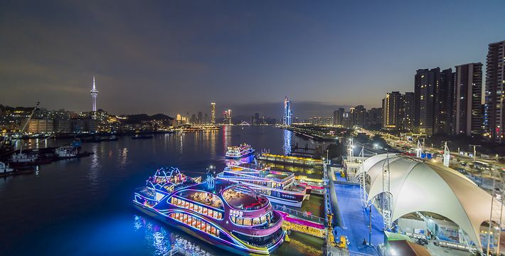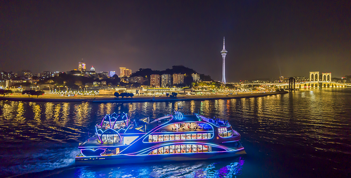 浪漫之城,浪漫之旅——珠澳夜游,豪华的游轮从湾仔旅游码头出发,沿澳门的海岸线航行。沿途可尽情浏览珠澳两地万家灯火、火树银花的美丽夜景,还可品尝各类美食和欣赏娱乐表演。