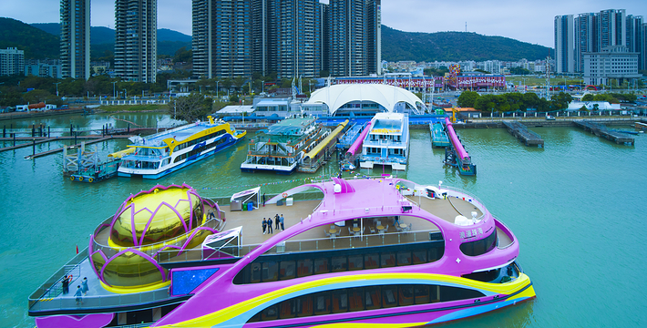 “珠澳海湾游”航线途经:1、国际会展中心(国内首屈一指的集展览、会议、酒店、剧院、音乐厅、甲级写字楼及配套商业于一体的大型会展综合体,是珠海城市和产业转型升级的重要支撑);2、横琴金融岛(珠海倾情打造“皇冠上的明珠” );3、澳门新葡京娱乐城;4、澳门三座跨海大桥;5、南海观音;6、珠澳口岸人工岛(填海总面积近220万平方米,将成为集交通、管理、服务、救援和观光功能为一体的综合运营中心);7、穿梭港澳飞翼船(感受海上速度与激情);8、澳门国际机场;9、世纪工程——港珠澳大桥(是世界最长的跨海大桥,全长55公里,由桥岛隧和粤港澳连接线组成,创下多个“世界之最”,它是全球第一例集桥、岛、隧道为一体的跨海大桥,建设难度极高,即使在国外桥梁专家眼里,它也是“全球具有挑战的跨海项目” )。观赏完系列景点后返航,航线途中还安排精彩节目和各式精美糕点。