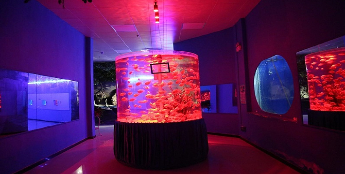 馆内以水为主线,近距离观赏到各种有代表性的动物以及它们的栖息环境,并向您展示不同水域的不同物种之间的奇妙联系,展示生命的奇妙和谐的生存方式,从而体会到大自然生命的和谐。在这里您直接透过玻璃观赏到海洋生物和各种珍奇鱼类在水中的优雅泳姿,并借此对它们进行更好的研究和观察。如果幸运,您将会被邀请参与活动,和这些令人惊叹的海洋动物近距离接触。