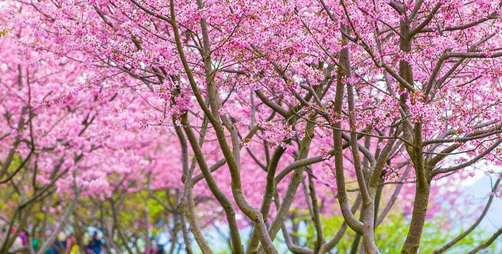 "小园新种红樱树,闲绕花枝便当游"。早年台农的"无心插柳"及后来政府的"有意栽培",成就了永福樱花今日的飘芳万里。