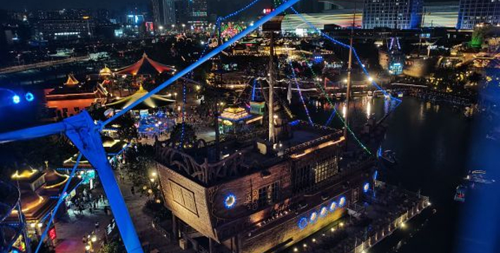 特色1——六大主题区域,精彩纷呈,盘古穿今,多个大型游乐设备和经典演艺剧场,领略爆炸式狂欢;