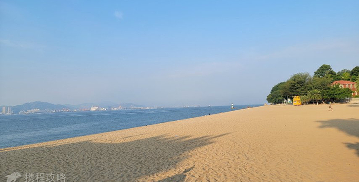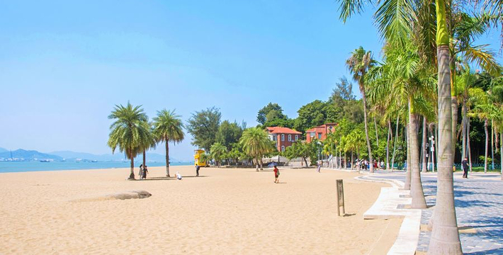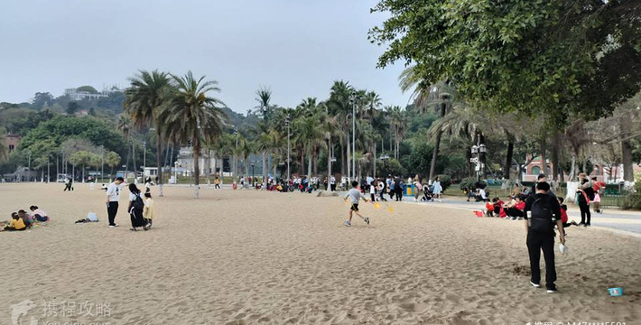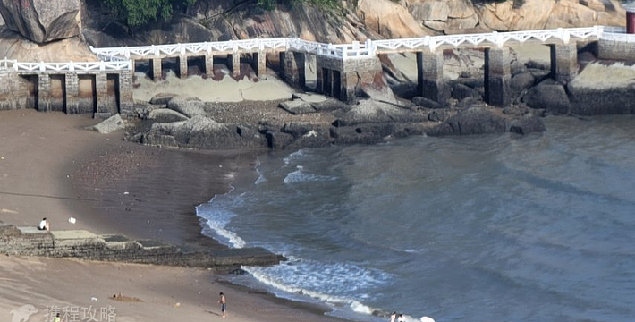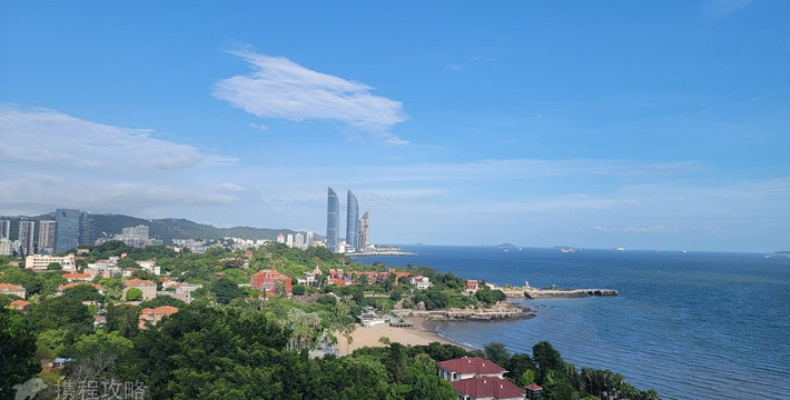 在菽庄花园入口处的边上,面朝大海,背面就是日光岩,可以看到最高处光秃秃的岩石,风景很美。这里又是一个人群聚集区,在水里游泳的的人很少,单纯看海,感受下海水沙滩。边上有几家海鲜大排档,里面还真有不少人在吃饭,环境较嘈杂。沿路过来不少烧烤摊位,鱿鱼烤的挺香的,不过这么热的天对喝的渴望更强烈些。