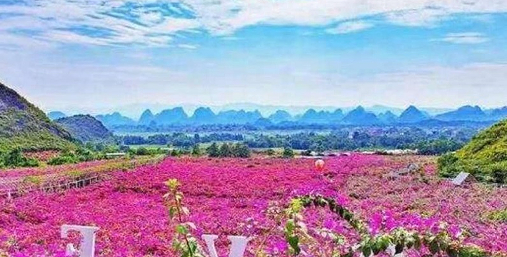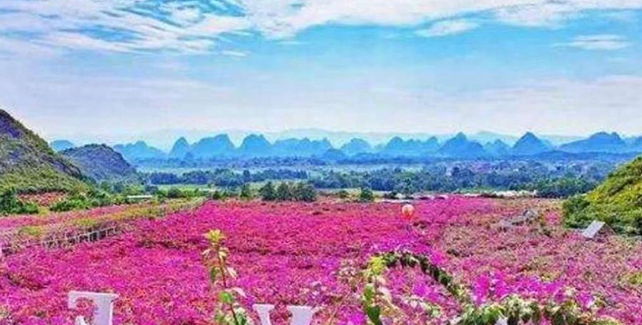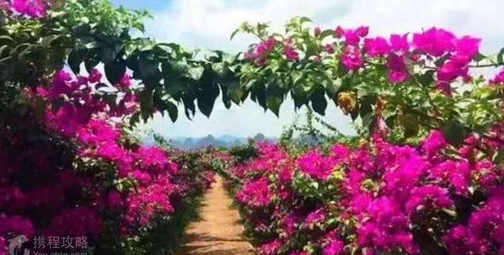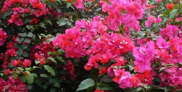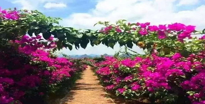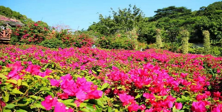 花台山景区三角梅园占地800亩,是全市面积最 大的三角梅园!目前,三角梅已经绽放,浪漫满满,是您赏花秋游首 选之地。