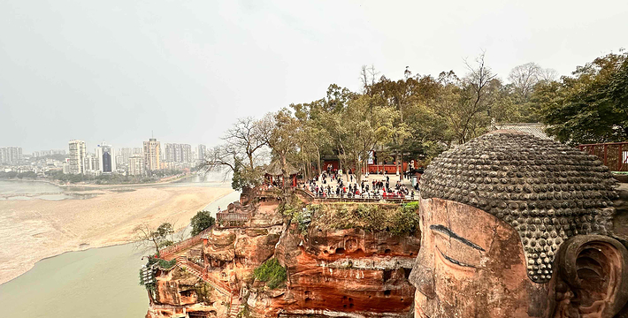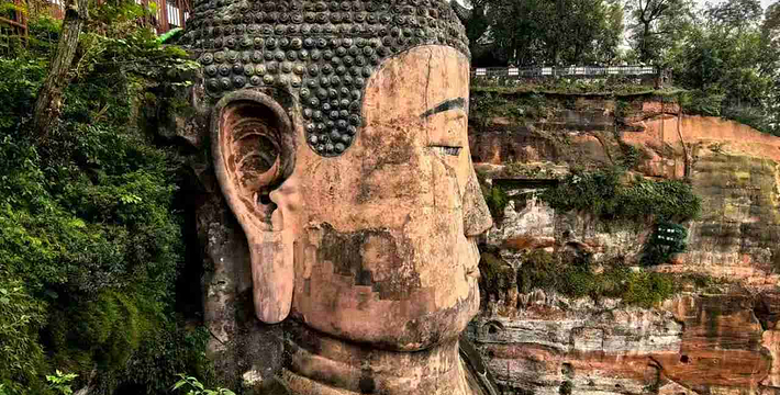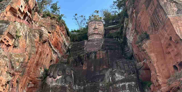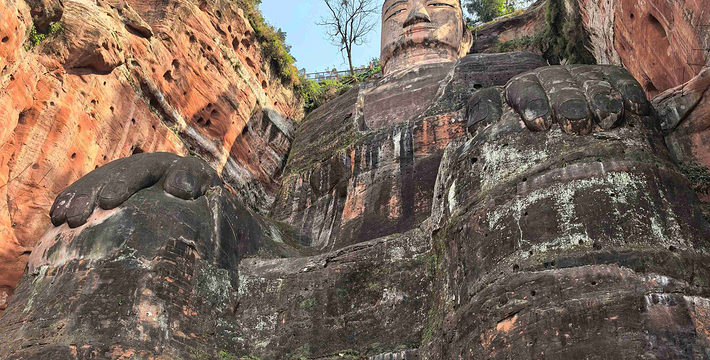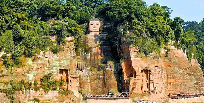 乐山大佛 —— 山是一尊佛,参拜,庄严雄伟;佛是一座山,仰视,气势崴嵬在风景壮丽的四川乐山,在大渡河、青衣江、岷江的合流处,端然正坐着一座高达七十多米的佛像,还高二十多米。在乐山大佛头的螺髻上面可以容十多人围坐,耳朵空隙可并立两人,双足相距近十丈,两个人接卧也不及大佛的一个脚趾长,一个人站立脚旁也未能高出脚面。隔江遥望,才能观看到大佛的全貌。景区包括乐山大佛、灵宝塔、凌云禅院、海师洞、九曲—凌云栈道、巨型睡佛等。据记载,乐山大佛开凿的发起人是海通和尚。古代的乐山三江汇流之处,凌云山麓,水势相当的凶猛,舟辑至此往往被颠覆。每当夏汛,江水直捣山壁,常常造成船毁人亡的悲剧。海通和尚见此立志凭崖开凿弥勒佛大像,欲仰仗无边法力,“易暴浪为安流”,减杀水势,永镇风涛。于是,海通和尚遍行大江南北、江淮两湖一带募化钱财,开凿大佛。工程几度停工,前后历经90年时间才完成。“乐山大佛”是后人对这座位于四川省乐山市的大佛的通称。根据专家考察证实,其真实官方名称应该是:嘉州凌云寺大弥勒石像。唐代崇拜弥勒佛,佛经说弥勒出世就会“天下太平”,所以当海通修造乐山大佛时,自然选择了弥勒佛,而且弥勒佛既是能带来光明和幸福的未来佛,这同平息水患的镇江之佛要求是一致的。旅游线路推荐:一日游:凌云山—龙湫虎穴—灵宝塔—凌云栈道—乐山大佛—东坡楼—海师洞—凌云寺—佛国天堂—璧津楼—巨型睡佛