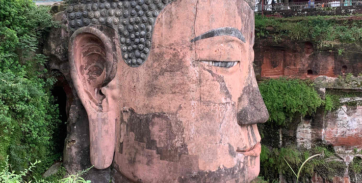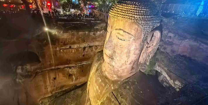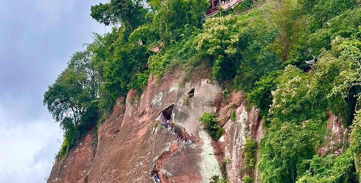大佛左侧,沿“洞天”下去就是近代开凿的凌云栈道的始端,全长近500米。右侧是唐代开凿大佛时留下的施工和礼佛通道——九曲栈道。爬上栈道,能从不同高度瞻仰大佛威仪。