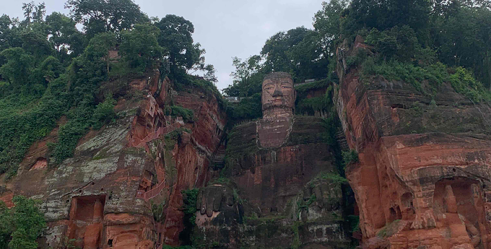 乐山大佛 —— 山是一尊佛,参拜,庄严雄伟;佛是一座山,仰视,气势崴嵬在风景壮丽的四川乐山,在大渡河、青衣江、岷江的合流处,端然正坐着一座高达七十多米的佛像,还高二十多米。在乐山大佛头的螺髻上面可以容十多人围坐,耳朵空隙可并立两人,双足相距近十丈,两个人接卧也不及大佛的一个脚趾长,一个人站立脚旁也未能高出脚面。隔江遥望,才能观看到大佛的全貌。景区包括乐山大佛、灵宝塔、凌云禅院、海师洞、九曲—凌云栈道、巨型睡佛等。据记载,乐山大佛开凿的发起人是海通和尚。古代的乐山三江汇流之处,凌云山麓,水势相当的凶猛,舟辑至此往往被颠覆。每当夏汛,江水直捣山壁,常常造成船毁人亡的悲剧。海通和尚见此立志凭崖开凿弥勒佛大像,欲仰仗无边法力,“易暴浪为安流”,减杀水势,永镇风涛。于是,海通和尚遍行大江南北、江淮两湖一带募化钱财,开凿大佛。工程几度停工,前后历经90年时间才完成。“乐山大佛”是后人对这座位于四川省乐山市的大佛的通称。根据专家考察证实,其真实官方名称应该是:嘉州凌云寺大弥勒石像。唐代崇拜弥勒佛,佛经说弥勒出世就会“天下太平”,所以当海通修造乐山大佛时,自然选择了弥勒佛,而且弥勒佛既是能带来光明和幸福的未来佛,这同平息水患的镇江之佛要求是一致的。旅游线路推荐:一日游:凌云山—龙湫虎穴—灵宝塔—凌云栈道—乐山大佛—东坡楼—海师洞—凌云寺—佛国天堂—璧津楼—巨型睡佛