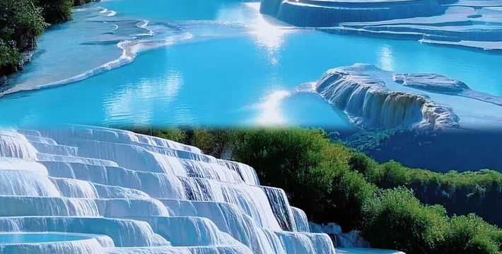 白水台是迪庆藏族自治州中甸县的重要风景点之一,位于中甸县东南101公里处。海拔约有2380米,其造型酷似一层层梯田。成因是由于水中的碳酸氢钙经太阳光照射,水分蒸发后形成碳酸钙白色沉积物,之后又不断覆盖地表而形成的泉华地。白水台占地面积3平方公里,属温带气候,降雨较多,年平均气温为11.4℃。这里是中国纳西民族文化的发祥地之一。据考证。途径白水台被其美景吸引,留下来设坛传教,因此是纳西族东巴教徒的神圣之地。附近纳西族的民居、服饰和工艺品也很有特色。