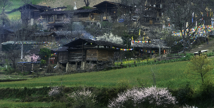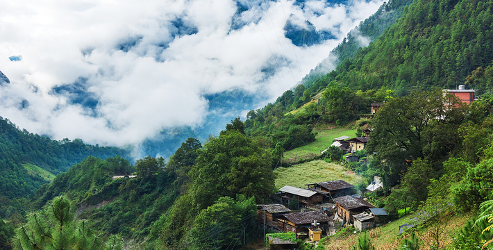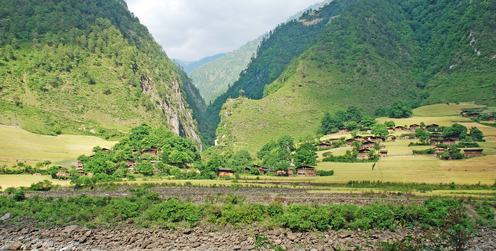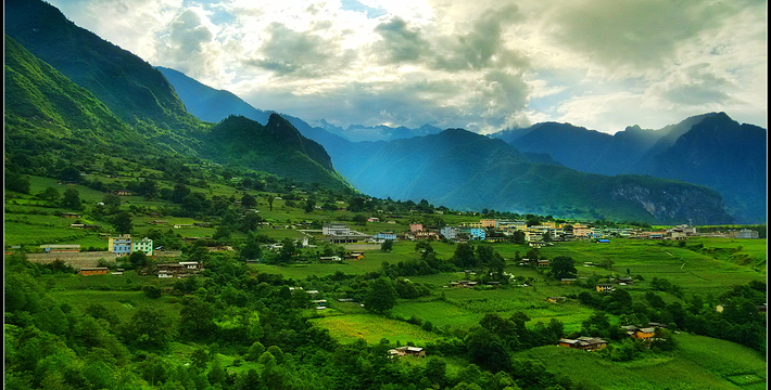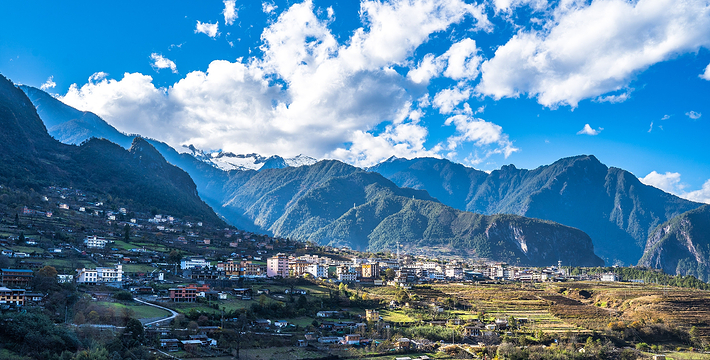 丙中洛被人们称作怒江傈僳族自治州中的桃花源。从丹当出发、沿怒江北行40余公里,就是滇藏交界的丙中洛乡。丙中洛主要居住着怒族、藏族、独龙族等少数民族,本世纪初年,随着基督教的传入,丙中洛几个民族中兼有了各种不同的宗教信仰:原始宗教、喇嘛教、基督教共存。丙中洛位于贡山县城丹打以北42公里。 怒江从西藏奔腾而至,在丙中洛绕了一个大弯,形成了一块小平坝。这里居住着怒、藏、独龙、傈僳等多种少数民族,形成了多民族的文化和多元的宗教。既有原始图腾的崇拜,又有喇嘛教,还有西方的天主教。多种宗教在这里共存共溶,成为宗教的一个奇观。这里的怒族、藏族能歌善舞,是怒江的歌舞之乡。这里还有远近闻名的怒族“鲜花节”,石板粑粑、石片盖屋等风俗和景观。