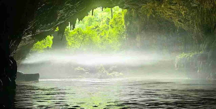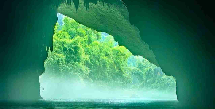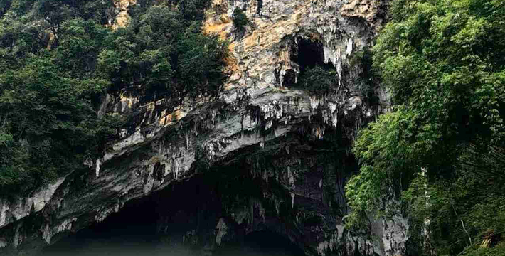 百鸟岩,又名延寿洞,该洞是个独特的地下河溶洞,是大自然几亿年来的“杰作”。百鸟岩的成因主要是在地下河水对漠斋山不断的溶蚀、浸蚀、崩塌的漫长过程中扩大而形成。盘阳河自巴马甲篆乡吉屯白熊洞潜入山下,形成了1500多米的伏流暗河,然后从此洞流出。洞中钟乳石千姿百态,各肖物类,水碧石净,光环影绕,特别是伴随着游船的前行,在每隔两三百米就有一个天窗而形成日光月色的光感效果及在光与影不断变幻的时光隧道中,犹如经历了“三天三夜”的神奇感受而令人兴奋不已。洞顶岩泉四季飘洒,洞中冬暖夏凉,三伏宜避暑,严冬可避寒。洞内距出口不远的厅堂中隐约可闻百鸟轻唱,蝙蝠和鸣,厅顶有岩燕、岩鹰、翠鸟、蝙蝠等飞行动物在此栖息,每当朝霞初升或夕阳西斜的时候,成千上万的岩燕飞出洞口贴水逐戏,蔚为壮观,因此得名百鸟岩。游百鸟岩只要一个半小时。去半个小时,回半个小时,在洞内感受神奇的“三天三夜”也只有半个小时。时间虽短,其乐无穷。百魔洞是在岸上走,百鸟岩是在水上游。百魔洞还有几盏照明灯,百鸟岩一盏照明灯都没有,拍照很困难。“夜里”根本没法拍,“白天”的光线也很弱。那昼夜交替、光与影变幻的奇观,一般相机是很难把它表现出来。