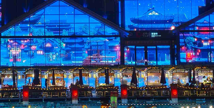 在锦江两岸河堤设计多*能的装置艺术,白天作为景观装置艺术,静态讲述锦江璀璨的文化。夜间乘船夜游,根据游船航行路线,游客对锦江沿岸影像与光彩变化的进行沉浸式体验,菩提声光秀、曲艺坝坝茶、码头故事、十二月市、十二月花、合江亭帆船秀,动态展示门泊东吴万里船和花重锦官城的优美画卷。