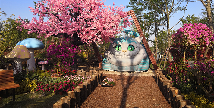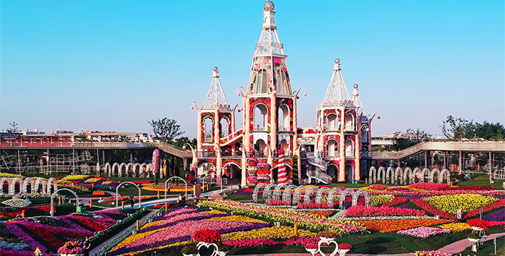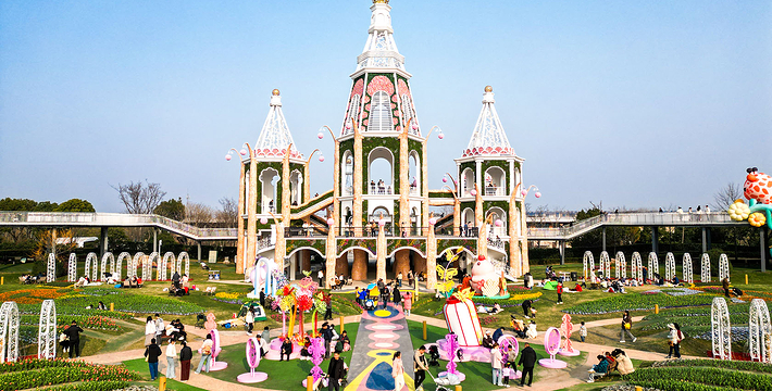 赏花时段:4.06-7.26--灵感来源于童话故事里花精灵女王的梦幻城堡。城堡的外立面将会被缤纷绽放的矮牵牛、角堇、洋凤仙、红绿草、石竹等花卉完全覆盖,宛如高迪的魔幻建筑。花精灵城堡既是奇迹花园标志建筑,又是园区的观景点。4.7-7.30 主要花色红粉白为主,主要品种矮牵牛等,总面积约750㎡,花卉约5万株 。