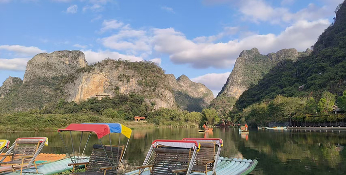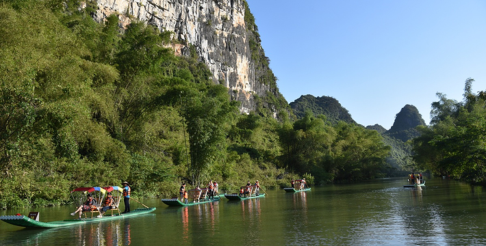 竹筏游乘坐人工划动的竹筏,飘荡在水天一色的青山绿水间,体验世外桃源般的自然山水意境,观赏大自然鬼斧神工般的活山景观:如来神脚山、骆驼山等景观。而竹筏漂从诗画田园码头出发,体验5个堤坝的过坝刺激,飘荡在水天一色的青山绿水间,体验世外桃源般的自然山水意境,观赏大自然鬼斧神工般的活山景观:下水牛山、笔头山、放牛娃山、如来神脚山、骆驼山等活山景观。