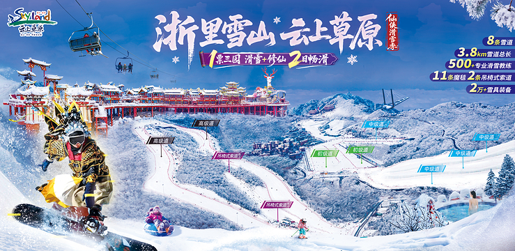 云上草原星空滑雪场,位于安吉云上草原景区内核心区域赤豆洋雪岭峰。滑雪场面积6万平方米,滑雪接待中心及雪具大厅、餐厅、VIP服务等配套齐全,滑雪场有初级滑道和中级滑道,能满足不同滑雪爱好者的需求,并配备专业的滑雪教练和管理团队,有专业的安全管理团队为滑雪游客的安全提供保障,让游客有非凡的滑雪体验。