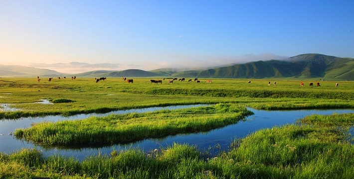 湿地草原和草原不同,是一处水草丰美的自然风光区。