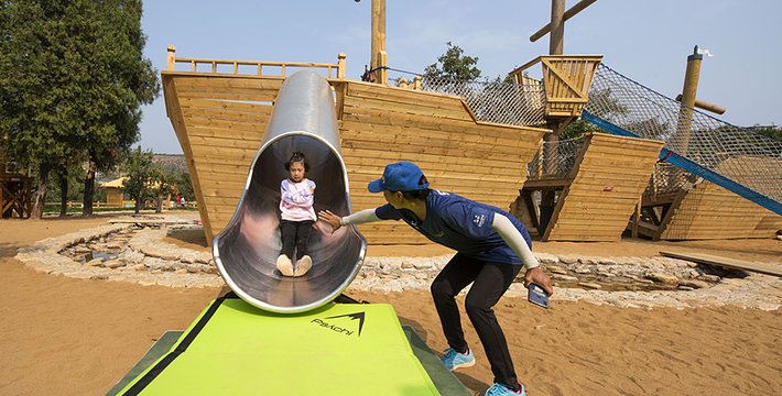 3、可以攀爬、钻洞、蹦跳、滑行等,有着几十种玩法的大型综合无动力项目—JIM海盗船;