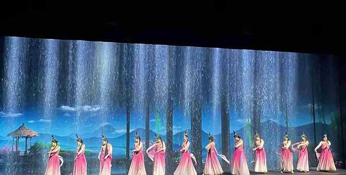 这里有苍茫古远的半坡之光,这里有灞柳依依的浪漫诗情,这里有泱泱大秦的风骨气魄,这里有万里扬沙的丝路传奇,这里有大唐长安的盛世华章……上万套机械与设备满场运转,三千吨大洪水倾泻而下,数百立方黄沙扑面而来,用虚实结合的表现手法打破舞台与观众区域的界限,沉浸式地感受一次穿越之旅。