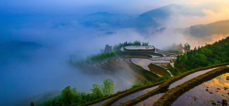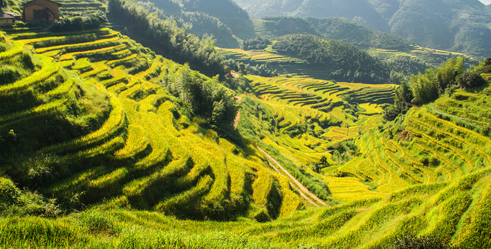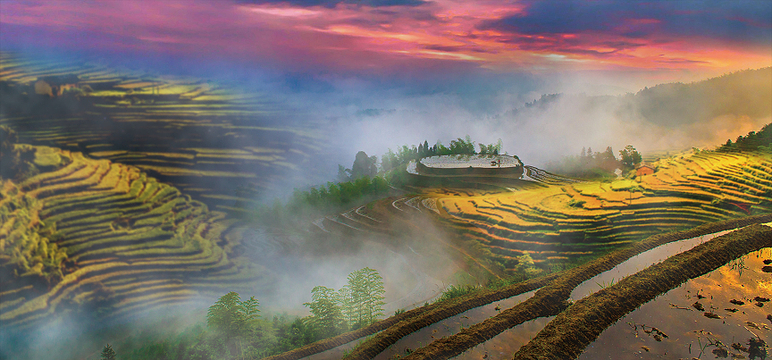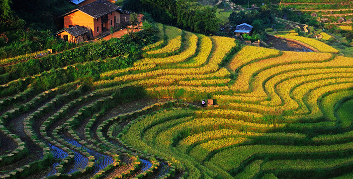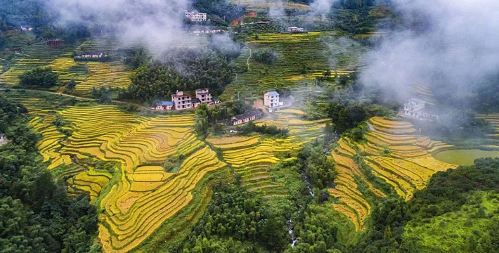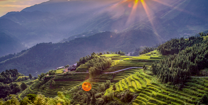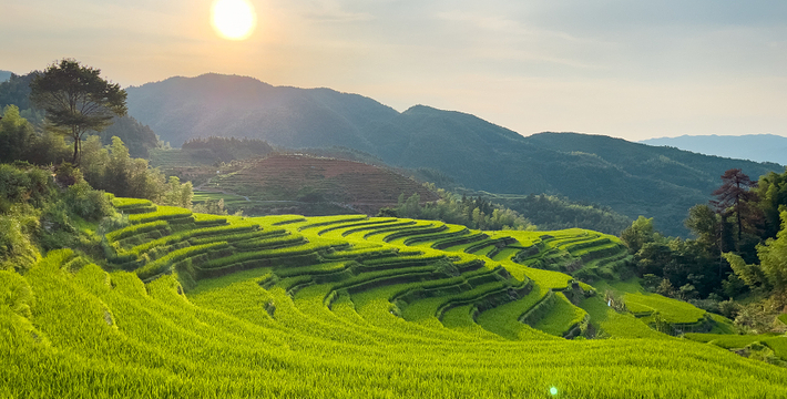 桃源梯田位于江西省吉安市遂川县左安镇西南部的桃源村,桃源梯田层层叠叠,高低错落,大小不一,其线条行云流水,四季形态各导。桃源梯田地处海拔1442米的轿子顶(又名神女峰)的崇山峻岭深处的桃源村。桃源梯田主要以农业梯田景观为主体,融入客家民族风情为一体,在这里可以听到优美的客家山歌,享受原汁原味的客家风情。看万亩梯田,品农家饭,赏客家文化的生态旅游发展思路,将成为大井冈旅游圈的一个重要组成部分