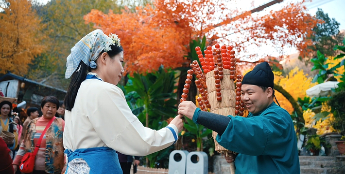鲁商·红叶柿岩旅游区位于山东省淄博市博山区和尚房村(滨莱高速博山出口西行100米处),地处原始古老峡谷之中,群山怀抱,具有独特原生态乡村气息。景区建筑依山而建,青石砌房,红瓦覆顶,有至今保留完好的清古建筑。
