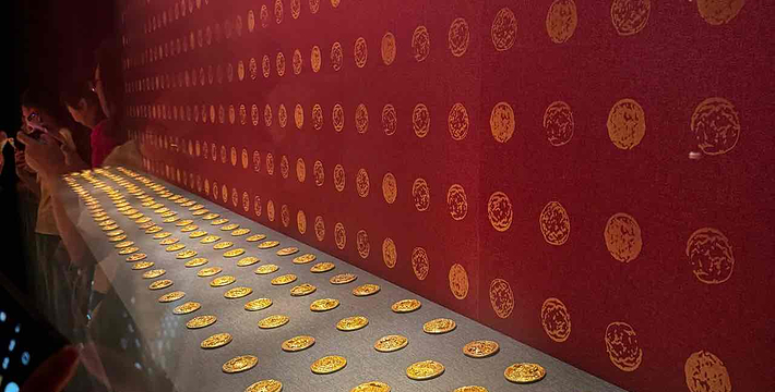 【海昏侯博物馆】博物馆内设有“金色海昏”、“书香海昏”、“单漆海昏”、“遇见海昏”四个展区,管内陈列各式各样的青铜器、金器、马蹄金、漆器、简牍等大量出土文物,全面展示了海昏侯国的历史与文化,反映了西汉皇室、列侯有品位、精致的日常生活,体现大汉时代的强盛和文化震撼,体现海昏侯国文化遗存见证南方开发、中西文化交流等历史意义。