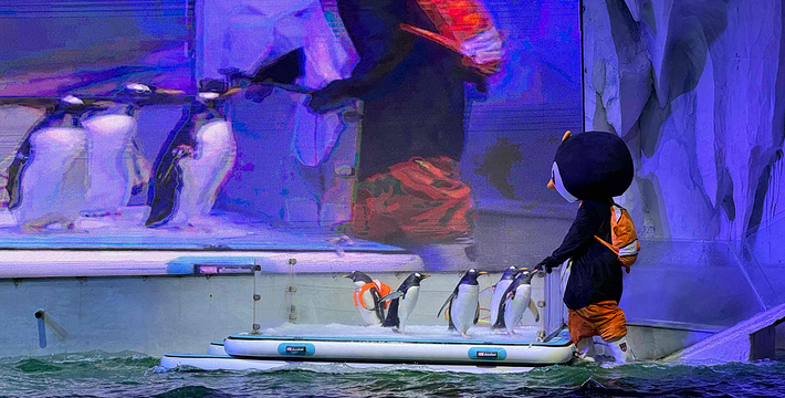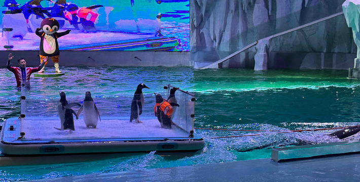 园区包含极地馆、海洋馆、淘学企鹅馆、北极熊体验馆、恐龙馆五大场馆;打造白鲸秀、海豚秀、冰川极光秀、海象脱口秀、企鹅表演、水舞、鳐鱼表演七大主题表演。