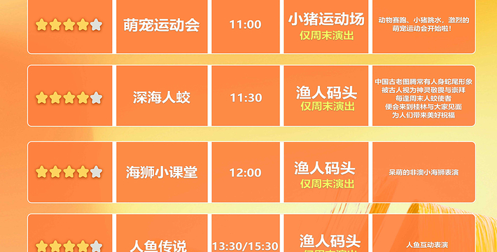 《喂食秀》11:40/16:30,演出地点:深海两万里,每周五休演