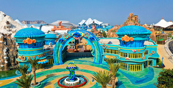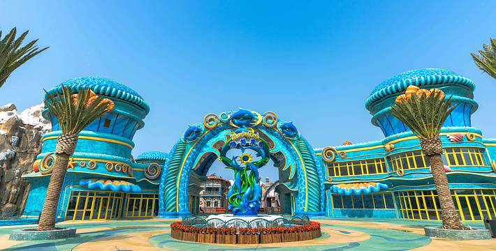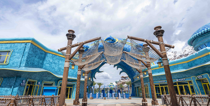 童世界海洋乐园位于海花岛1号岛F区北侧,占地面积13万平方米,由美国旅游和休闲设计公司艾迪泰克(IdeAttack)与PGAV设计,拥有先进的人工海洋生态系统,是全天候、全季节、室内外结合的中国奇幻互动体验式海洋主题乐园。内含极地世界、热带雨林、深海梦幻三大生态圈,拥有23项游玩项目、近2万平方米的海洋生物科研基地和国际先进的海水养殖保育系统,汇聚白鲸、海狮、企鹅、北极熊、海豚等全球多种海洋生物,展示众多鲨鱼种类,让游客与海洋生物零距离接触,是与海洋生物全方位互动的体验式乐园!