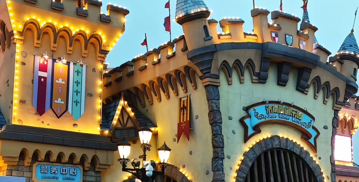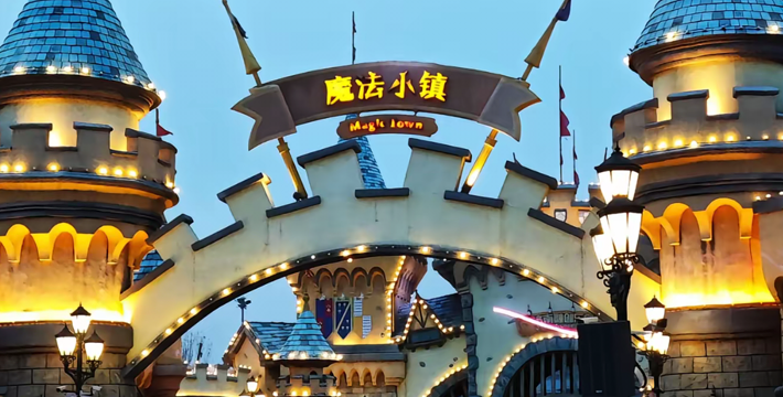 济南融创乐园占地43万㎡,作为开放式主题乐园,以欧式风格为主题,设计了魔法小镇、冒险港湾、精灵森林、矮人农庄四大沉浸主题区域,30多台世界顶 级游乐设备为游客创造非同凡响的欢乐体验。游客既可以穿越到未知神奇的魔法小镇,也可以在充满地中海风格的冒险港湾开启与海盗对决的冒险,在晚上去精灵森林邂逅可爱动物和去萌宠聚集的矮人农庄享受不同于都市的田园风光。