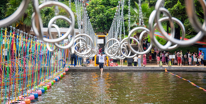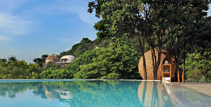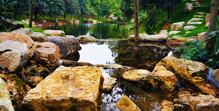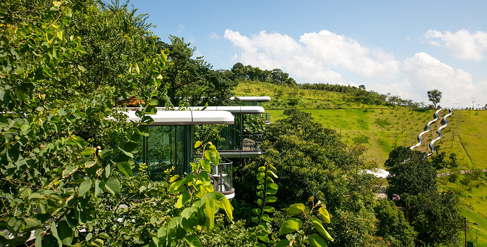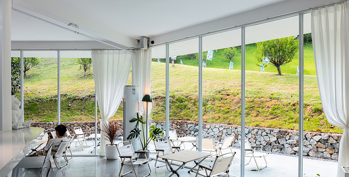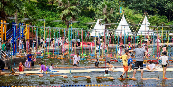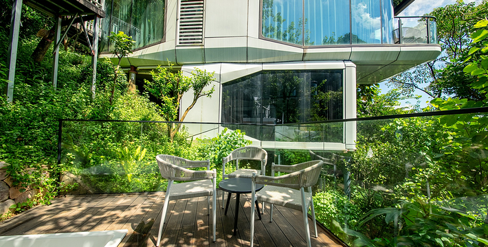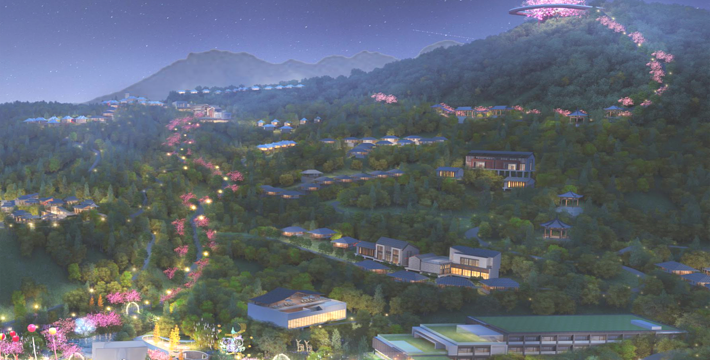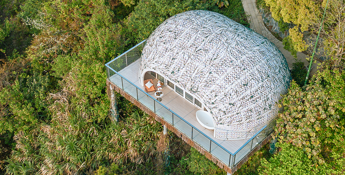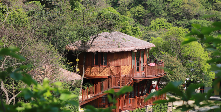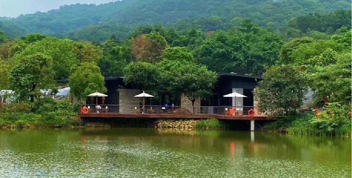 广州客天下国际旅游度假区,藏身于广州从化•桃花小镇内,背靠大金峰,四面环山,周围被树木环绕,与山谷地形巧妙的融合。大金峰径主峰海拔666米,森林植被丰富,森林覆盖率达80%以上;空气负离子含量高,项目内负氧离子整体高于20000个/cm³,部分区域负离子含量甚至接近30000个/cm³,比广州城区负离子含量高十几倍,是极具价值的天然氧吧。