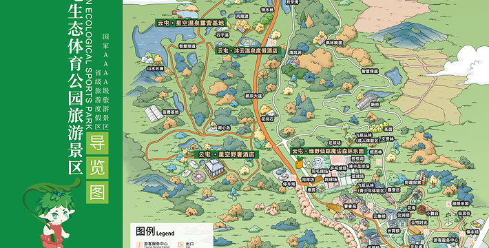 兴义云屯国际生态体育公园占地面积6700亩,其中,草坪1000余亩,森林4300余亩,植被覆盖率高达95%,森林覆盖率达到65%以上,园内负氧离子含量高,能够让游客在绿色海洋中洗肺,在大自然中养生。公园除了优美的生态环境外,还拥有生态农庄、露天烧烤、露营、真人CS、亲子乐园、跑马场、射箭场、特色民宿等二十余个游玩项目。