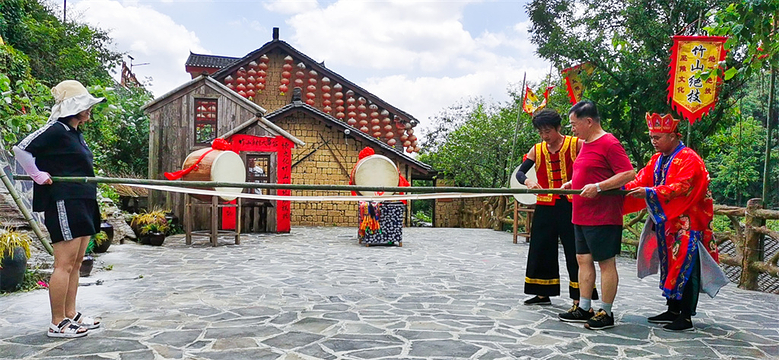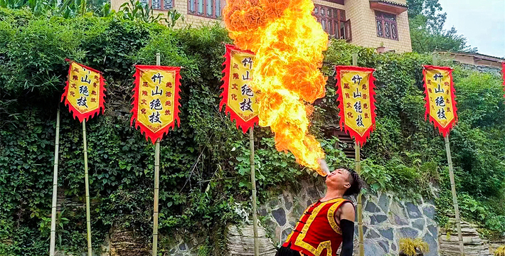 竹山苗寨位于湘西凤凰古城西北角,东南北三面环水,西面峻山叠嶂,幽坐凤凰昆仑峰山中,泉水清凉甘甜,山花烂漫,苗歌扬醉。 是湘西苗族风土人情、建筑风格、生活方式保存比较完整的堡寨之一,也是湘西苗族的标志地之一,是中国有名的“半坡部落”,建寨约有800多年的历史。