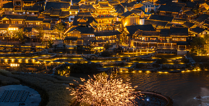 乌江寨国际旅游度假区位于遵义市播州区尚嵇镇,是集观光、休闲、度假、康养、会展为一体的大型综合业态的旅游目的地景区,依托于恬静的山水自然环境和浓厚的黔北民俗氛围,结合自然山势与河道地形的环境系统建设,呈现出一幅黔北民居群落画卷。在这里,黔北文化、非遗表演、生活场景都在巷子里、水面上穿梭汇聚,与乌江寨独特的地势巧妙结合,播撒着独属黔北的民俗文化魅力。以“共生思想”为理念,整个度假区沿乌江寨生态景观带规划传统工艺作坊区、沿河民居民宿区、民族文化表演区等12个街区业态,致力于打造“民居、民俗、民食”的黔北村落生态文明亮点,成为贵州旅游度假新品牌。