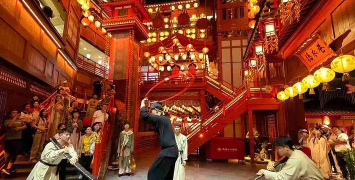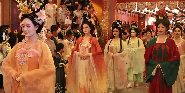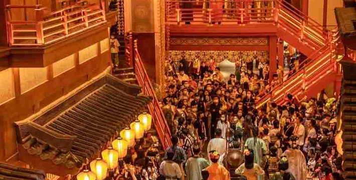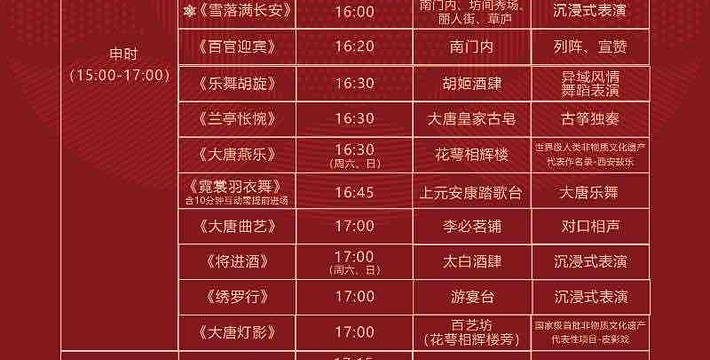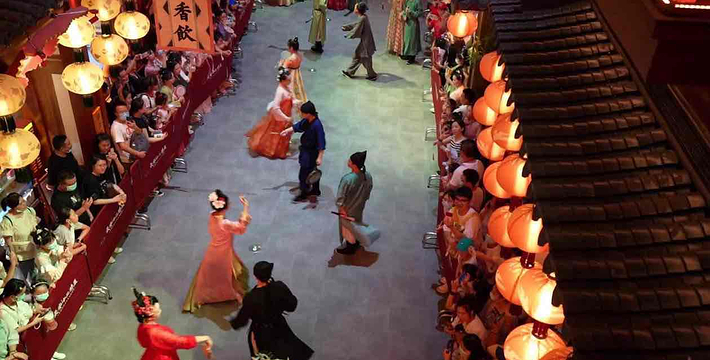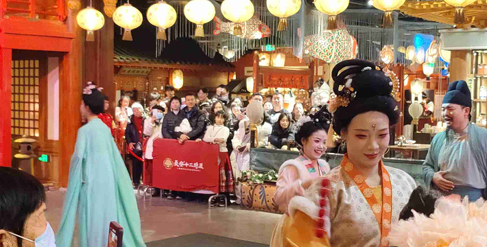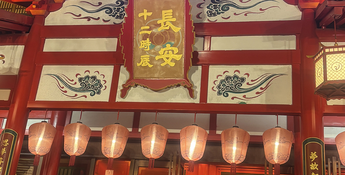 长安十二时辰主题街区是以唐市井文化为源点,以网剧《长安十二时辰》IP为主题,以沉浸式体验为核心,在建筑、软装、钱币、人物、服装、语言、音乐、故事等领域进行全唐化包装,同时围绕深度沉浸式故事体验,设置配套的餐饮、文创、演艺等业态内容,整体打造集全唐空间游玩、唐风市井体验、主题沉浸互动、唐乐歌舞演艺、文化社交休闲等为一体的全唐市井文化体验地。