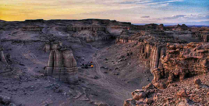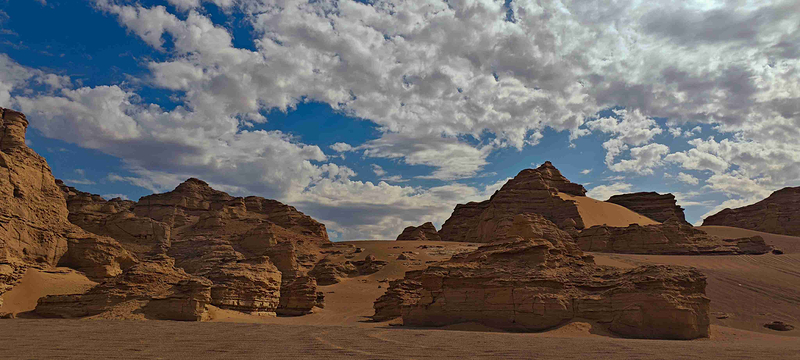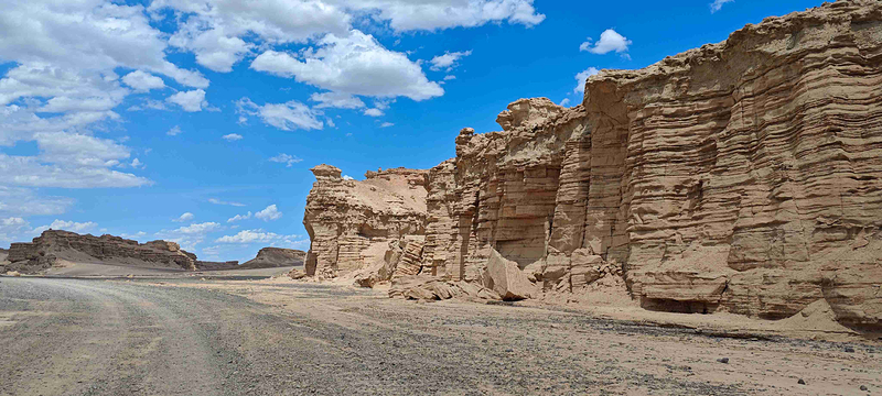 大海道是一条鲜为人知的穿越无人区之路,因大沙海而得名,故又名沙海道。这里汇集了古城堡、烽燧、驿站、史前人类居住遗址、化石山、海市蜃楼、沙漠野骆驼群、以及众多罕见的地理地貌。