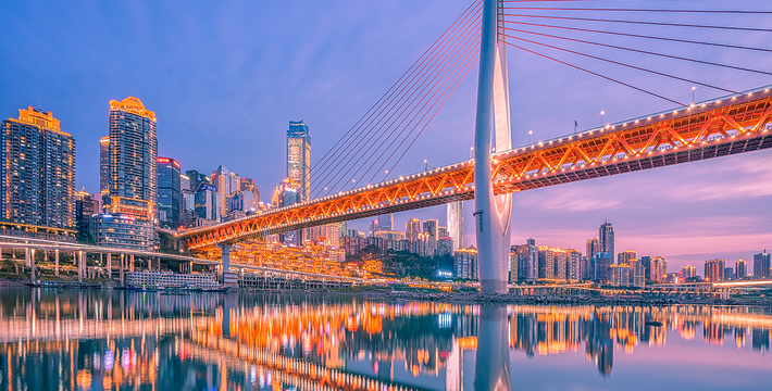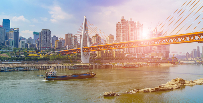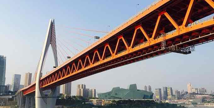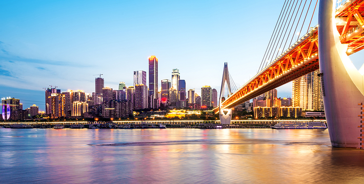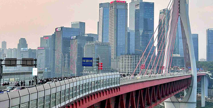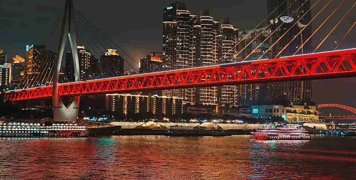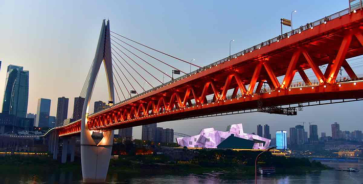 千厮门大桥连接了重庆市渝中区与江北区,横跨了嘉陵江,位于洪崖洞旁边,可以直接从大桥走到洪崖洞的楼顶,在嘉陵江大桥上拍摄洪崖洞是不错的位置,建议可以把大桥和洪崖洞连起来一起游玩。