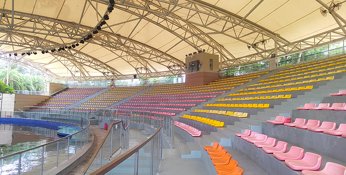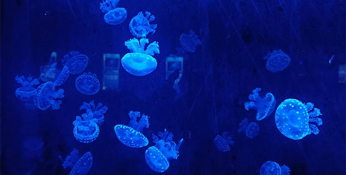 景区位于惠州市惠东县巽寮湾,馆内漫天繁星状的“梦幻长廊”,水母以简洁构图、斑斓色彩、高雅律动,带来梦幻般的视觉感受。展馆面积逾600平方米,设有五个展区。水母馆展出来自世界各地逾十种珍稀水母,数量累计超万只。